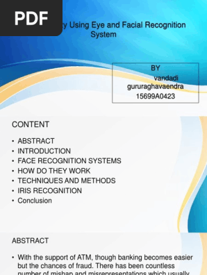 The purpose is to provide extra security to the atm systems scope the atm system is designed to run for 24 hours and to allow bank clients to carry out transactions in a secured way. Explore atm security using eye and facial recognition system with free download of seminar report and ppt in pdf and doc format. Everyday actions are increasingly being handled electronically instead of pencil and paper or face to face. Also explore the seminar topics paper on atm security using eye and facial recognition system with abstract or synopsis documentation on advantages and disadvantages base paper presentation slides for ieee final year electronics and telecommunication engineering or.